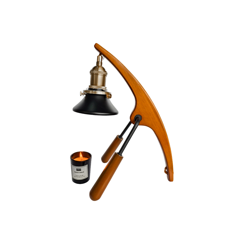エレガントな曲線を描いた木製アームが金色の光を放ち、柔らかく優美な光と影の弧を描きます。