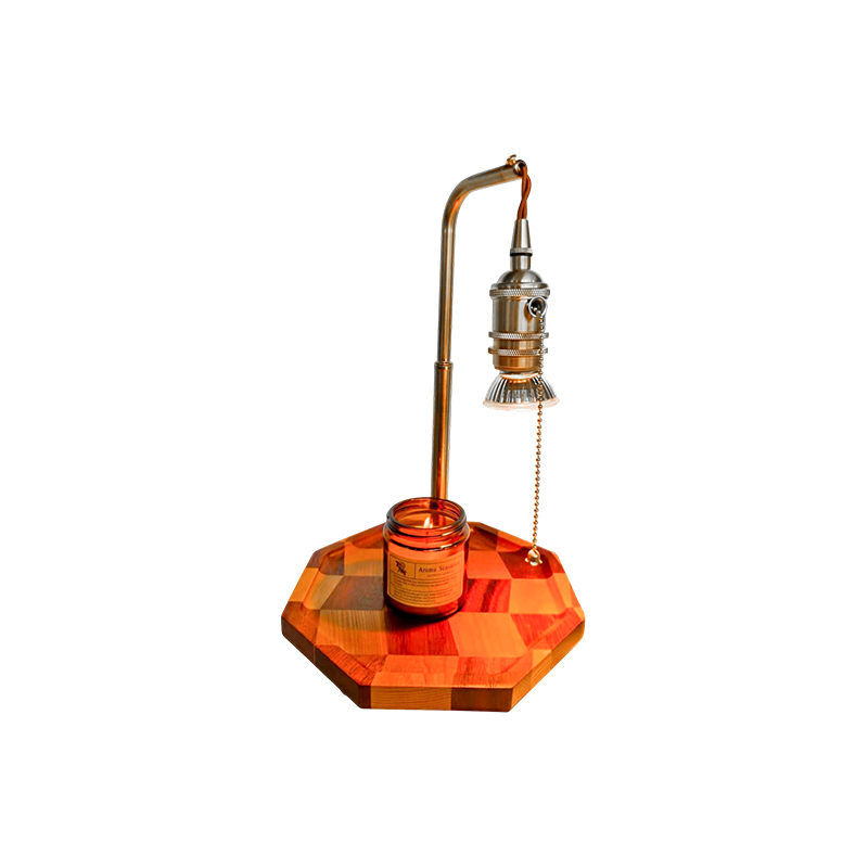 真鍮と木材を使用したレトロなランプ。調整可能な光により、夕日を捉えたような温かみのある流れるような輝きが生まれます。
