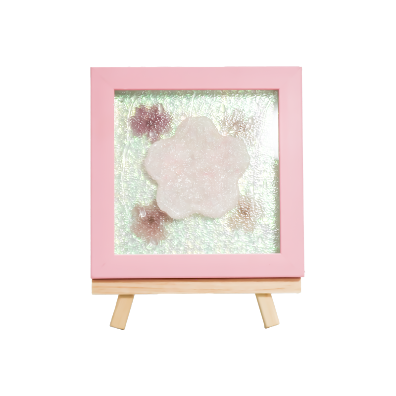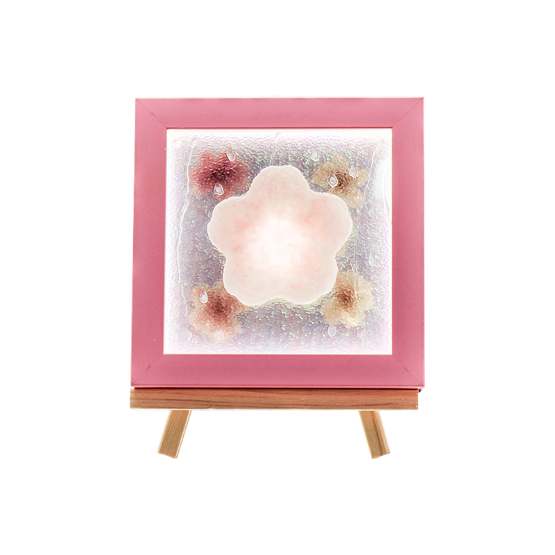 黄木枠に囲まれたランプは、あたたかな太陽を思わせる光で京都の朝を優しく包み込みます。透けるようなランプシェードは朝霧に包まれたベールを思わせ、中央の淡いピンクの桜は露に目覚めたかのようです。ランプの木の木目一つ一つに、職人の手による侘び寂びの美が宿っています。あたたかな光が灯ると、繊細な木目を通り抜け、壁にぼんやりとした花の影を映し出します。古寺で鳴る朝の鐘の音に、花びらがひらひらと落ちる音が聞こえてきそう。遠くへ旅する必要はない。ただこの灯を見つめれば、心は俳句「花あかり」の世界に安らぐ――蝋燭の灯と花の影が共に舞う禅の境地へ。この光は夜の中で最も優しい障子となり、あらゆる騒ぎを吸収し、あなたに静かで咲き誇るような安らぎをもたらす。