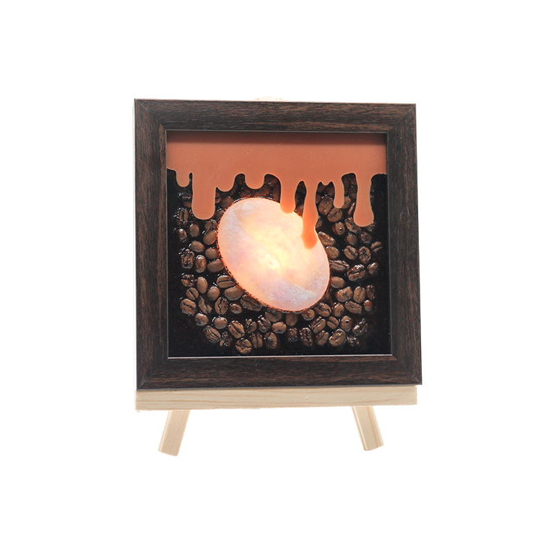 ドリップコーヒーの温もりが永遠に凝縮されています。琥珀色のランプは、抽出したてのコーヒーのクレマのように、ダークウッドのフレームの中で優しく揺らめきます。周囲に散りばめられたコーヒー豆は焙煎の芳醇な香りを残し、その上では琥珀色の液体が溶けたキャラメルのようにゆっくりと滴り落ちる。一滴一滴が蜂蜜を溶かしたような甘い光に包まれている。灯りがともると、温かな黄色の光が壁面を波打つように流れ、ラテのような「流れる模様」を創り出す。まるで土鍋のぐつぐつという音や京都の町家カフェのささやきが聞こえてくるかのようだ。何を探さずとも、ただこのランプを見つめているだけで、「温もり」という安らぎに身を委ねられる。夜の一杯の最も癒される「カップ」が、疲れ切った瞬間をすべて、穏やかな甘さに浸していく。