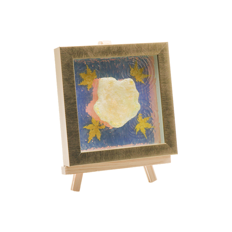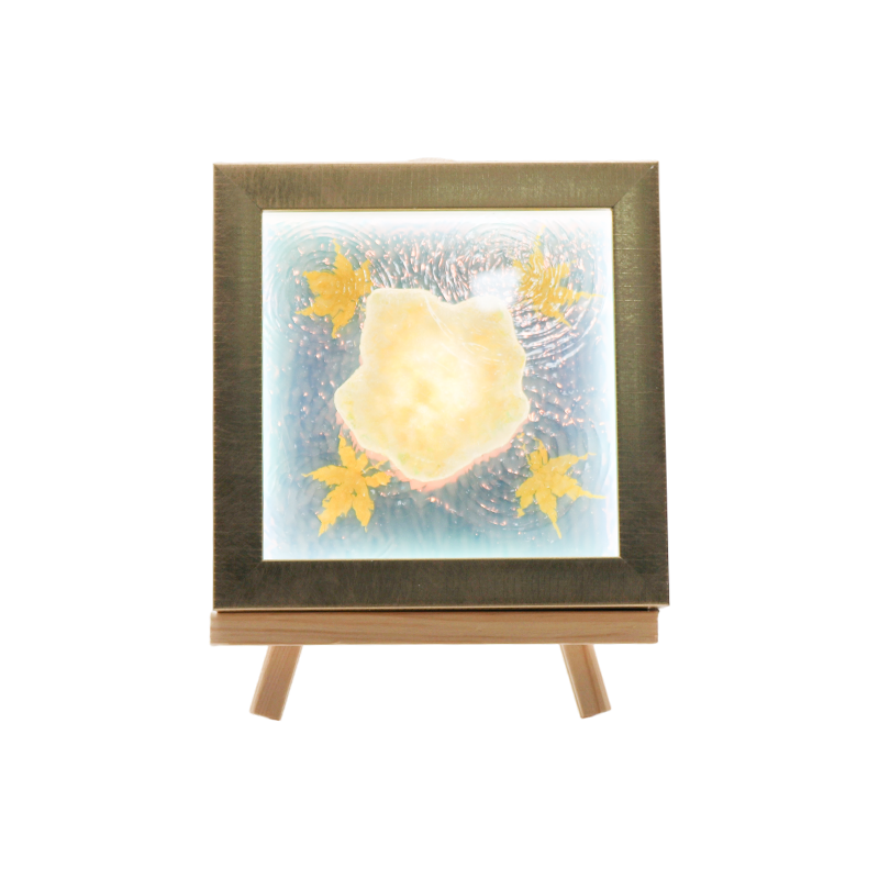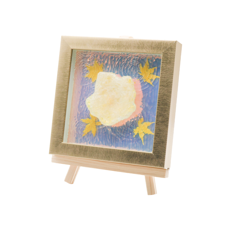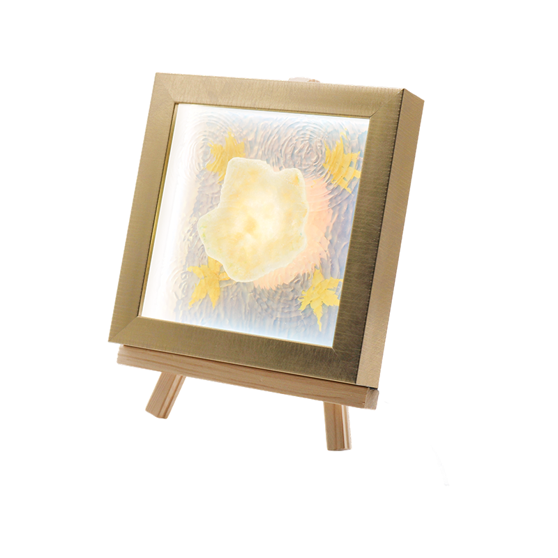 京都の紅葉が永遠に凝縮された一灯。温かな琥珀色のカエデの葉は朝露に優しく触れたかのように、職人の筆致が織りなす繊細な美しさが葉脈にきらめき、一筋一筋が季節のささやきを紡ぐ。青と紫のグラデーションに輝く螺旋状の台座は、夕暮れの湖を思わせる秋の光を呼び起こす。光と影の戯れが壁面に「もみじ影」のきらめく風景を創り出す。温かな光が灯る時、ランプ全体が古都の庭園に広がる「見ざる」情景となる―もみじの葉が光と影とかくれんぼをする。遠くへ旅する必要はない。この小さな秋の景色をただ見つめるだけで、松尾芭蕉の「静寂」の中に心が安らぐ。この灯りは、夜の「渋い」光の中で最も優しく、忙しい現代社会に禅の静謐な安らぎの場を提供する。