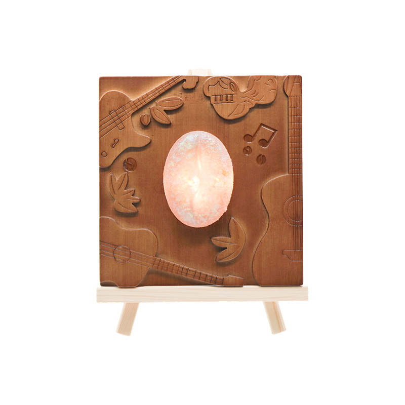 ダークブラウンの木製ベースが、コーヒー豆の豊かな香りと音符のリズムを光と影で紡ぎ出します。ランプ本体には対称的な葉模様が彫られ、木目の中にギターの曲線がほのかに浮かび上がり、弦を弾く指先の優しい振動が聞こえてきそうです。温かなオレンジ色の光が音符の空洞から漏れ、壁に小さな光の斑点を落とします。まるで午後のカフェで踊る陽光のように。夜が更けると、このランプは温かな見守り役となる。木香の余韻、光と影の織りなす模様、コーヒーの温もりが、古き京都の町家における土鍋の湯気と三味線の調べが響く穏やかなひとときを呼び起こす。何も求めず、ただ灯の下で静かに座れば、心は自然と安らぎの境地へと落ち着く。