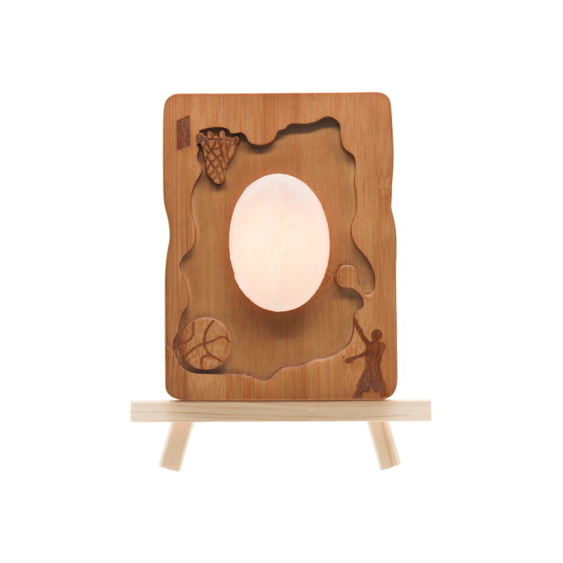 バスケットコートで繰り広げられる躍動的な瞬間が、永遠に凍りついた。ランプフレームは月光に浸された和紙の縁を思わせ、不規則で自然なひび割れが時のささやきを囁く。左上隅のシンプルなバスケットネットのシルエットは、右下で高く跳び上がるアスリートの姿と見事に調和し、その凍りついた跳躍は情熱と静寂の日本的邂逅である。温かな光が灯ると、木目はコートの流れる線となり、壁に躍動する光と影はネットを打つバスケットボールのさざめきを響かせる。コートへ急ぐ必要もなく、ただこのランプを見つめれば、京都の庭園に見られる「動中の静」という禅の精神を体験できる。この光はあらゆる倦怠の午後を包み込み、追い求める夢を優しく夜へと安らかに沈めさせる。
